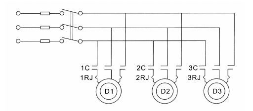 1、 D1表示排煙風機或加壓送風機。D2表示通風空調系統的排風機。D3表示空調機。P表示火警指示類。J表示防火閥和排 煙閥與風機聯鎖的繼電器。